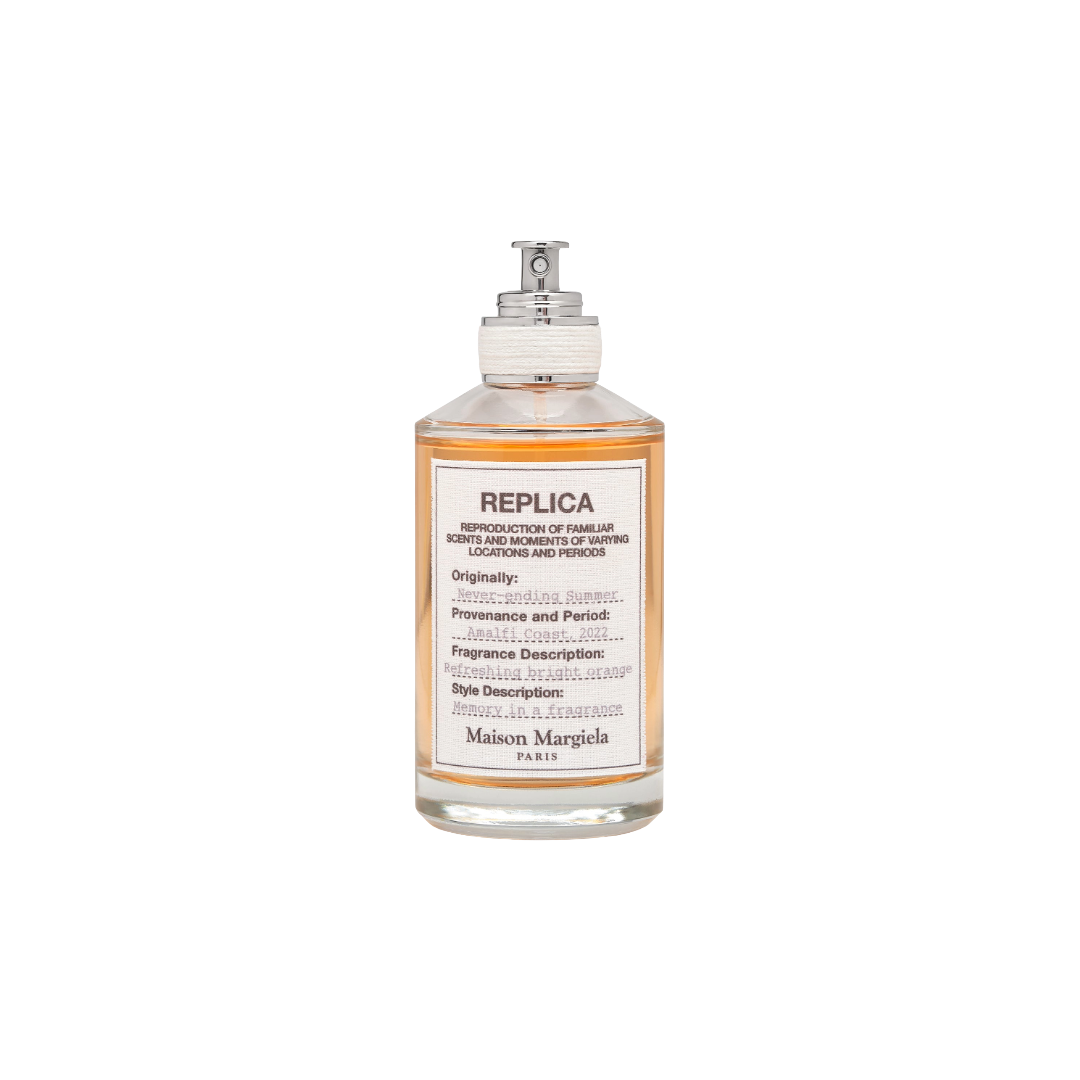 Part of the iconic Replica collection, Never-ending Summer is designed to awaken cherished memories through scent. Staying true to Maison Margiela’s creative collective philosophy, it translates a joyful moment into an olfactory snapshot, presented in the brand’s minimalist bottle with the signature cotton label inspired by the Replica fashion line.
